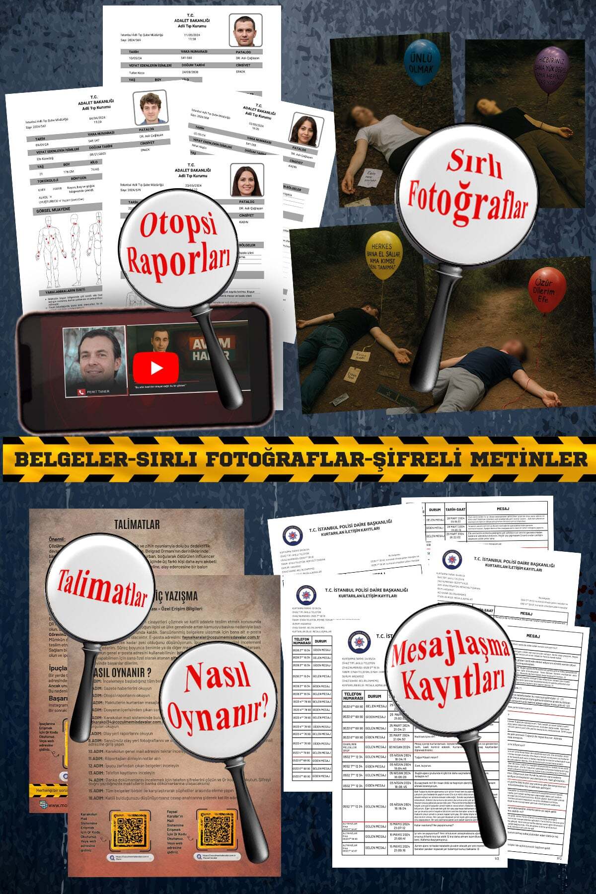 Kağıt dokusu, yazı dili, tarih kullanımı ve görsel düzen; bir kutu oyunundan çok arşivden çıkmış bir dosya hissi vermesi için özel olarak tasarlandı.