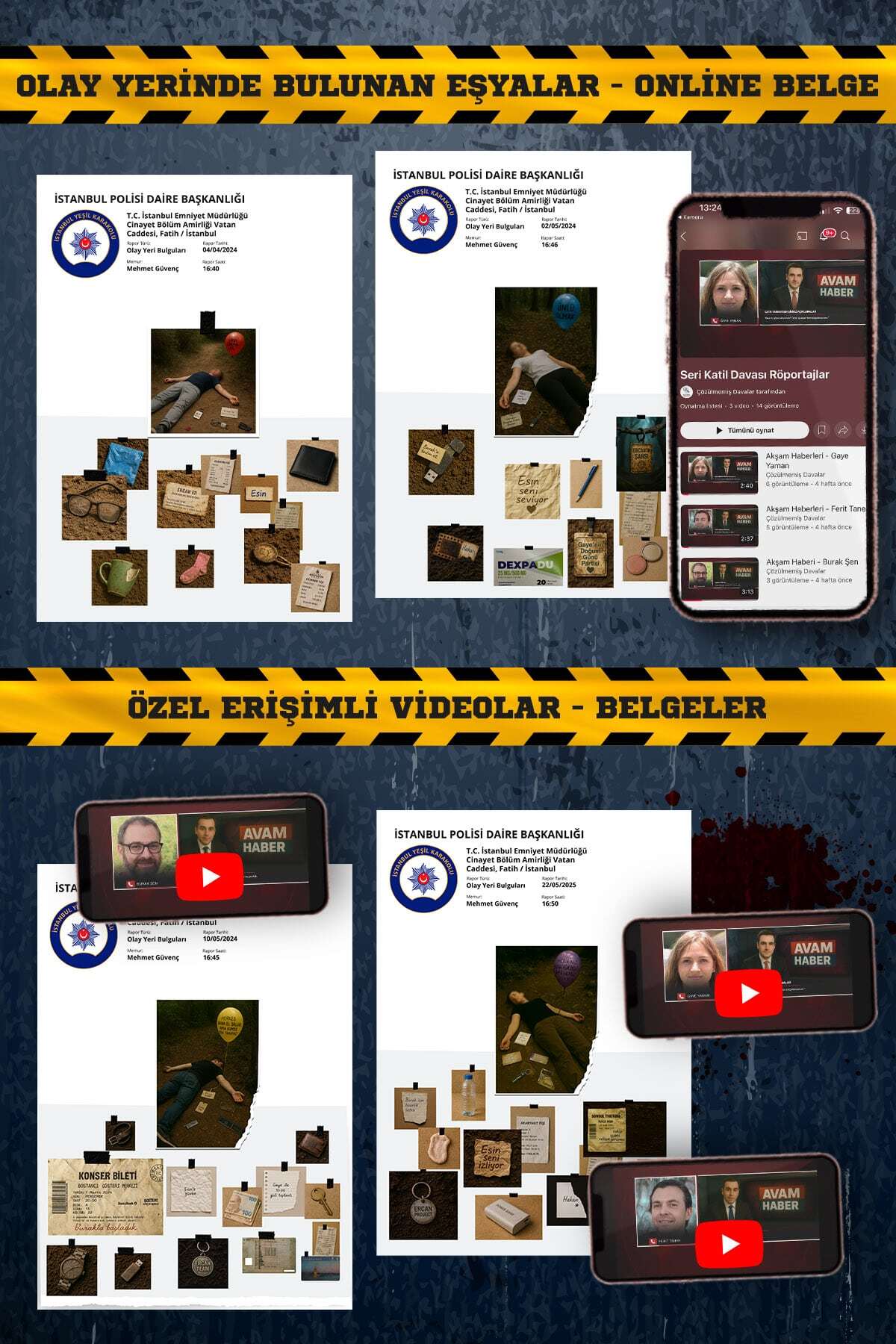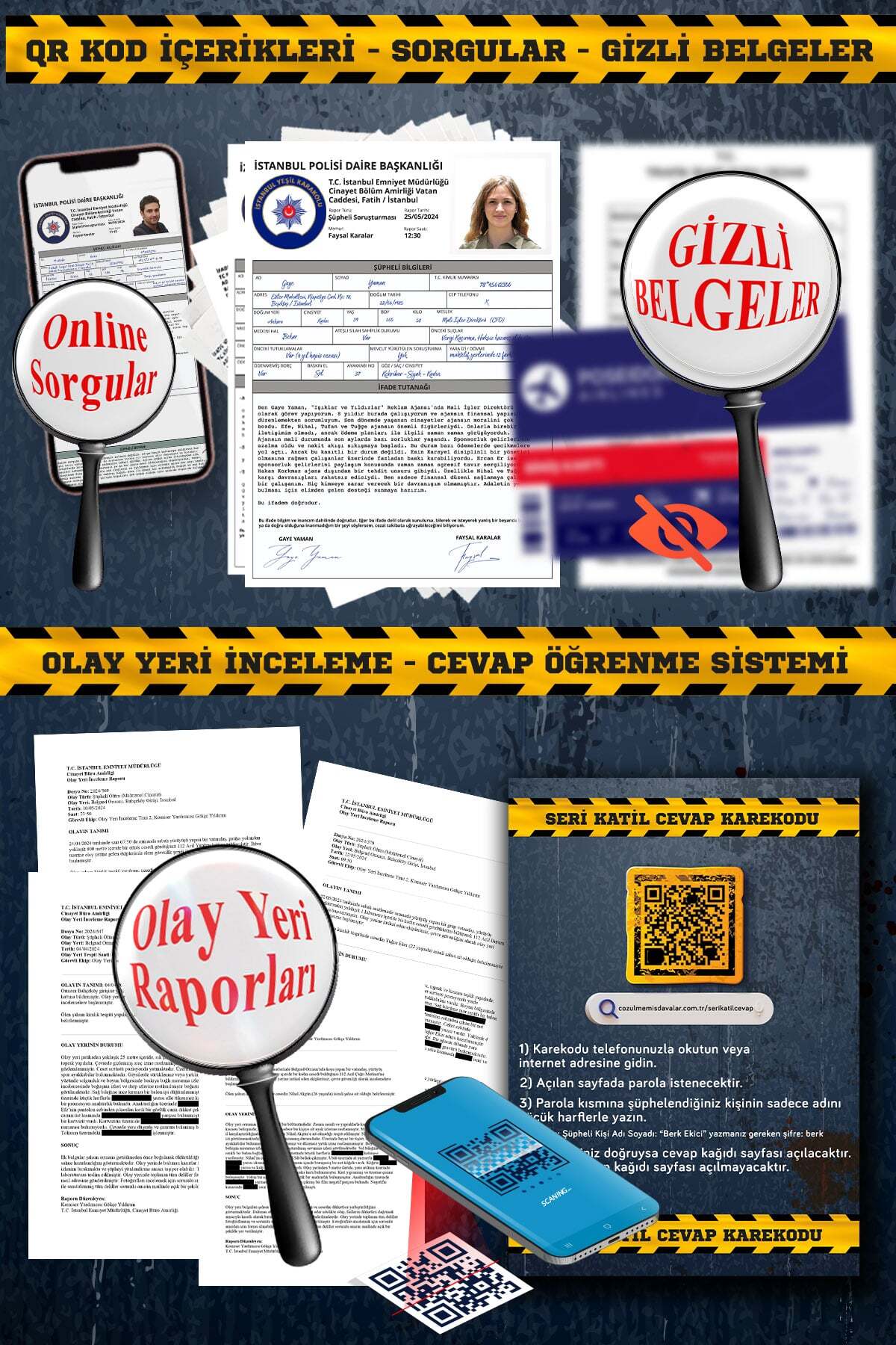 Orijinal dava dosyaları, adli fotoğraflar ve tutanaklar, gerçek suç deneyimi. Ayarlanabilir zorluk seviyesi.