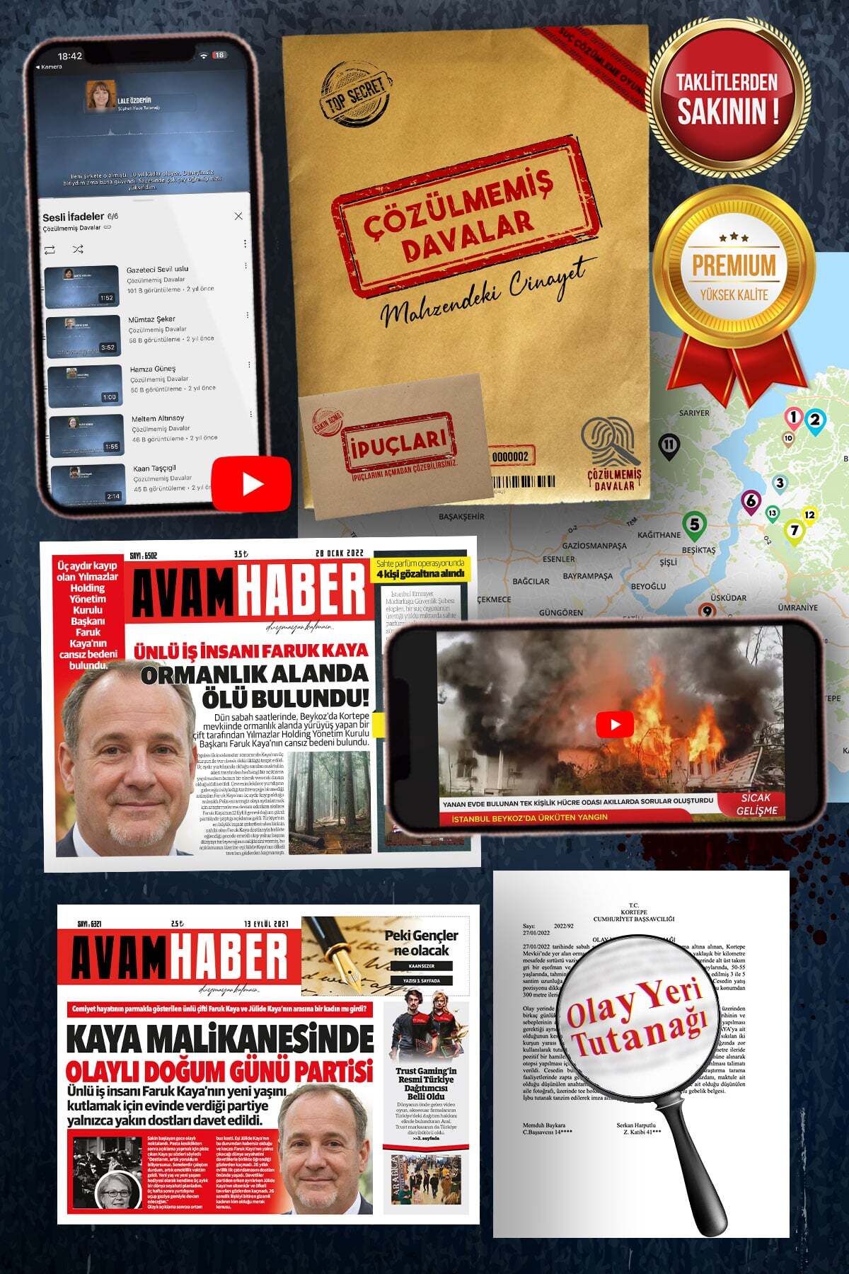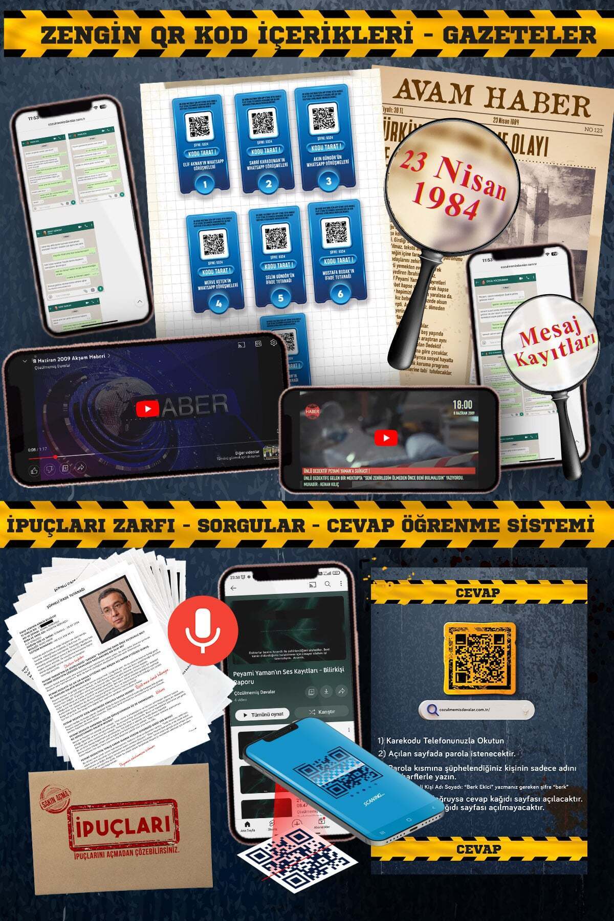 Orijinal dava dosyaları, adli fotoğraflar ve tutanaklar, gerçek suç deneyimi. Ayarlanabilir zorluk seviyesi.
