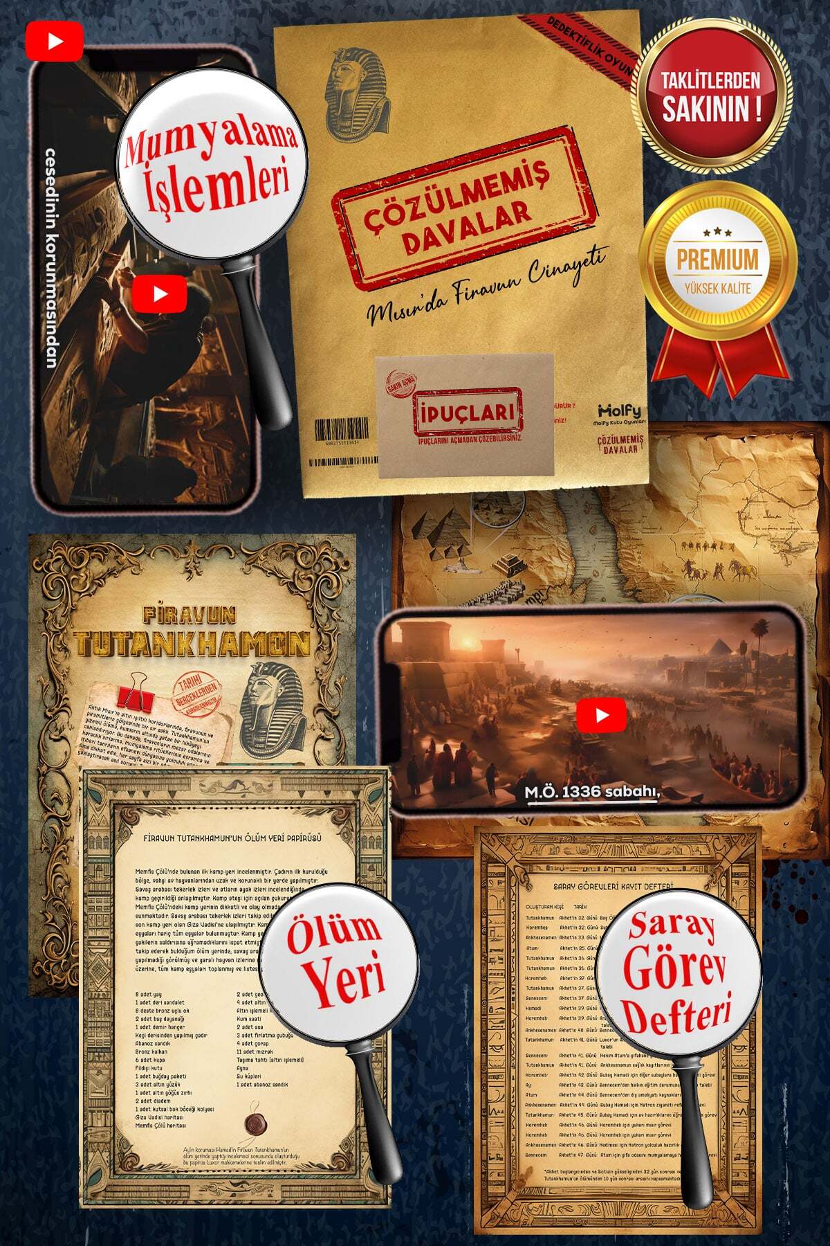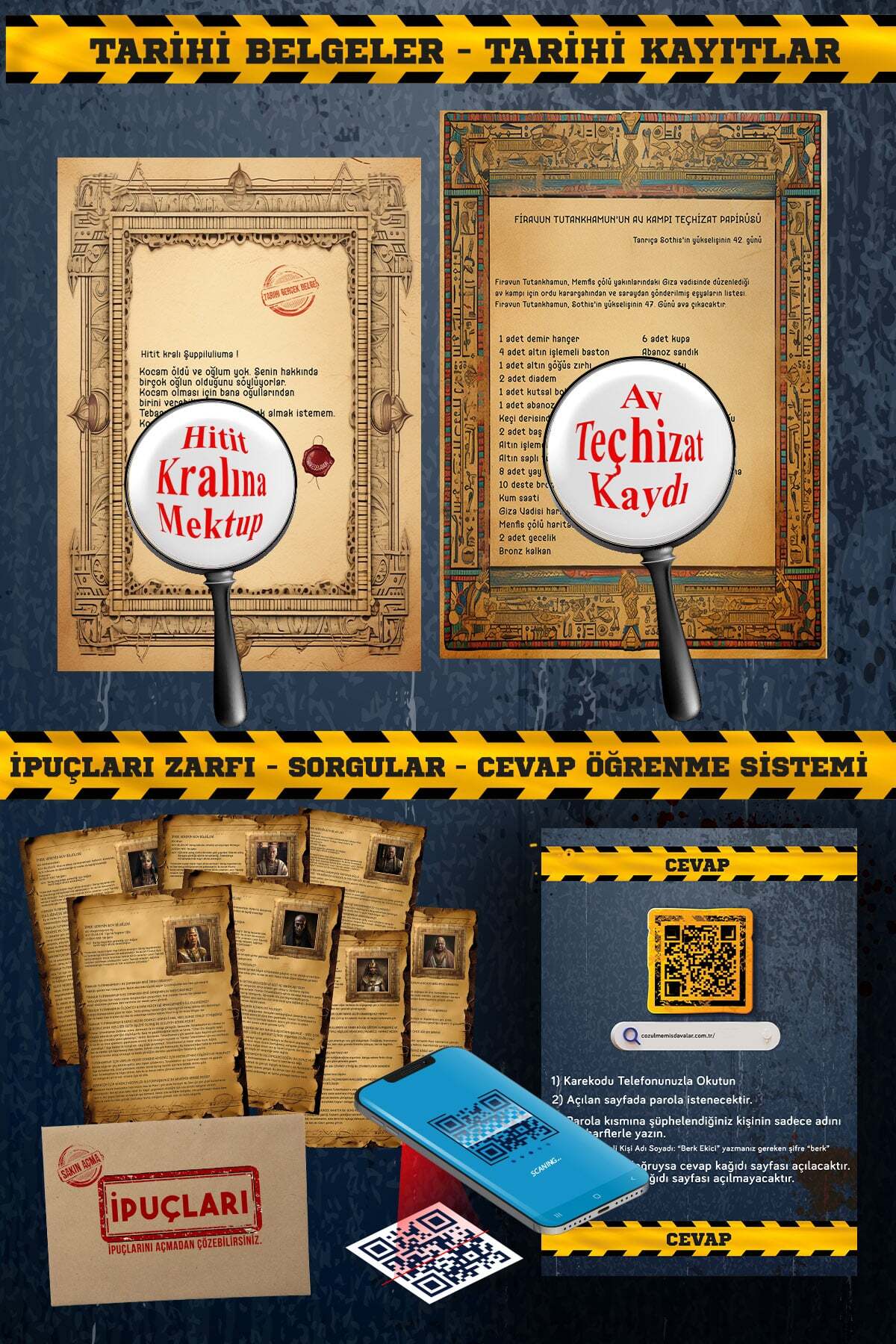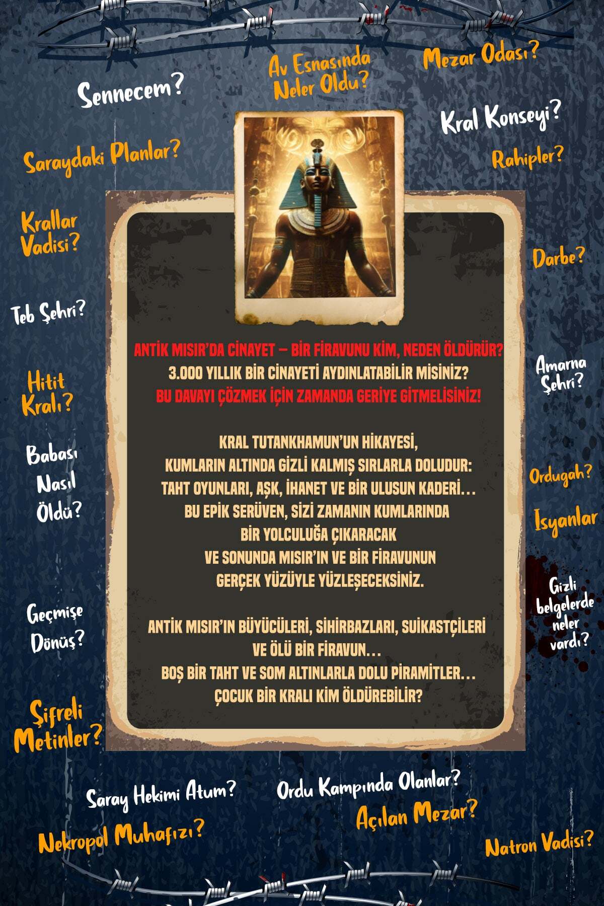 Kağıt dokusu, yazı dili, tarih kullanımı ve görsel düzen; bir kutu oyunundan çok arşivden çıkmış bir dosya hissi vermesi için özel olarak tasarlandı.